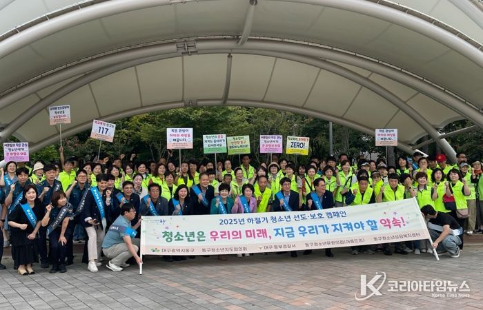 코리아타임뉴스 대구취재본부 | 대구 동구청과 대구 동구 청소년지도협의회는 지난 18일 추석 명절을 맞아 청소년 탈선과 비행을 사전에 예방하고 아동보호 및 학대예방을 위한 관심을 촉구하기 위해 율하동 청소년 문화의 거리에서 2025년 청소년 선도·보호 캠페인을 실시했다.