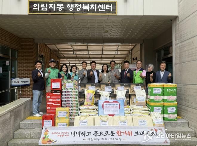코리아타임뉴스 충북취재본부 | 의림지동 각 직능단체와 기관은 지난 19일 추석 명절을 맞아 백미, 라면, 선물세트, 휴지 등 550만 원 상당의 후원물품을 의림지동행정복지센터에 기탁했다.