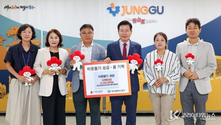 코리아타임뉴스 대구취재본부 | 대구 중구는 지난 22일 대구 중구자연보호협의회(회장 변상오)가 중구청을 방문해 다가오는 추석 명절을 앞두고 이웃돕기 성금 200만 원을 기탁했다고 밝혔다.