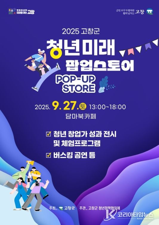 코리아타임뉴스 전북취재본부 | 고창군은 오는 9월27일 오후 1시부터 담마북카페에서 2025 청년의 날 기념행사 ‘청년미래 팝업스토어’를 연다.