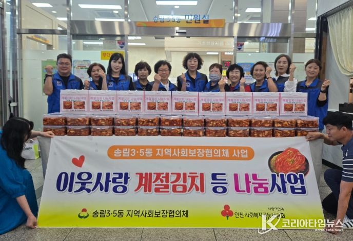 코리아타임뉴스 윤경수 기자 | 인천 동구 송림3・5동 지역사회보장협의체(민간위원장 정순자)는 지난 19일 지역 내 취약계층 60세대에 대한 ‘이웃사랑 계절김치 나눔사업’을 진행하였다고 밝혔다.