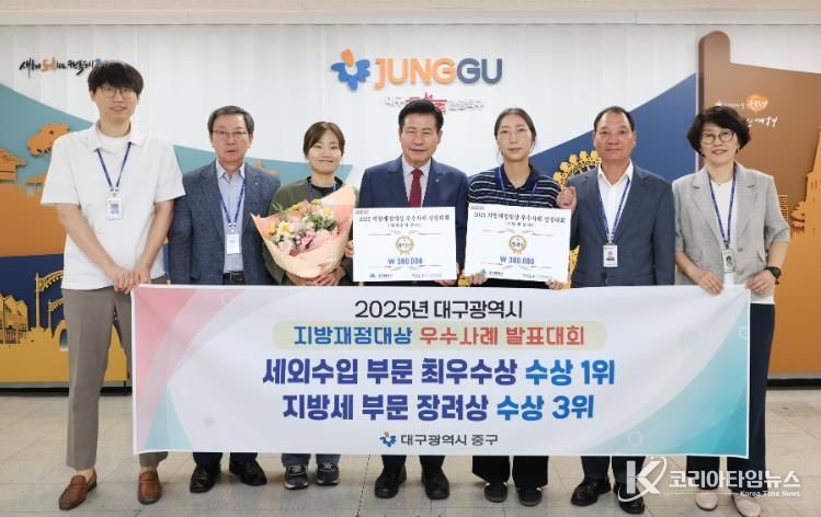 코리아타임뉴스 대구취재본부 | 대구 중구는 대구광역시와 한국지방세연구원이 주관한 ‘2025년 지방재정대상 우수사례 선정대회’에서 세외수입 부문 최우수상(1위), 지방세 부문 장려상(3위)을 받았다고 밝혔다.