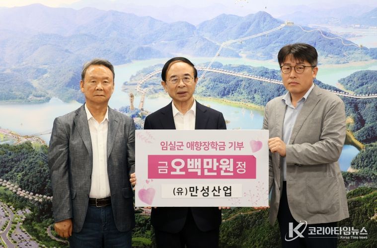 코리아타임뉴스 전북취재본부 | 임실군의 교육 발전을 향한 따뜻한 나눔이 계속 이어지고 있다. (유)만성산업(대표 전인석)이 지난 17일 임실군 애향장학회(이사장 심 민)에 장학금 500만원을 기탁하며 지역 인재들을 향한 변함없는 사랑을 전했다.