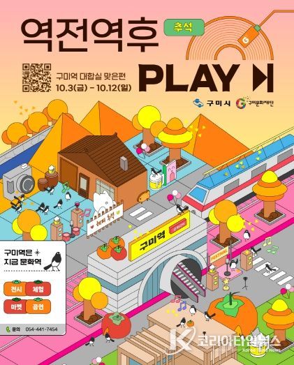 코리아타임뉴스 윤경수 기자 | 구미시와 (재)구미문화재단(대표이사 이한석)은 오는 10월 3일부터 12일까지 10일간 구미역 일대에서 '추석은 구미역에서' 행사를 개최한다. 이번 행사는 구미를 찾는 귀성객과 관광객들에게 풍성한 명절 분위기를 선사하고, 지역문화와 특색을 널리 알리기 위해 마련됐다.
