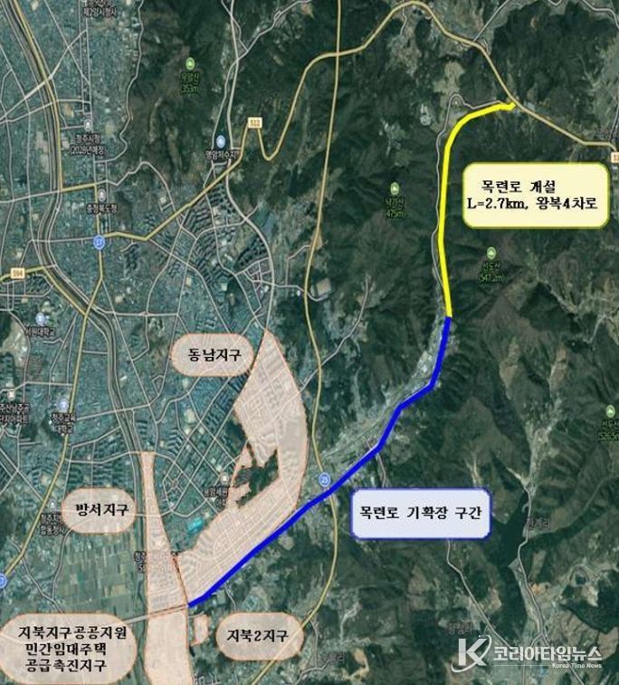 코리아타임뉴스 충북취재본부 | 청주시는 목련로 월오묵집에서 현암삼거리까지 연결되는 도로 개설사업의 추진을 위해 올해 하반기 타당성평가 용역에 착수한다고 밝혔다.