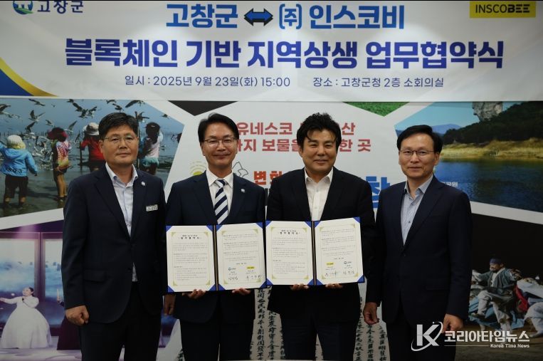 코리아타임뉴스 전북취재본부 | 고창군은 지역사랑상품권 ‘고향사랑페이’의 기술 고도화를 위해 23일 군청 회의실에서 ㈜인스코비와 업무협약을 체결했다.