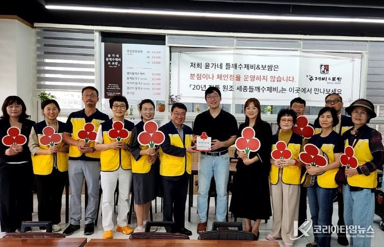 코리아타임뉴스 세종취재분부 | 세종특별자치시 대평동지역사회보장협의체(공동위원장 강옥주·이재익)가 23일 착한가게 신규 가입 사업장에 착한가게 현판을 전달했다.