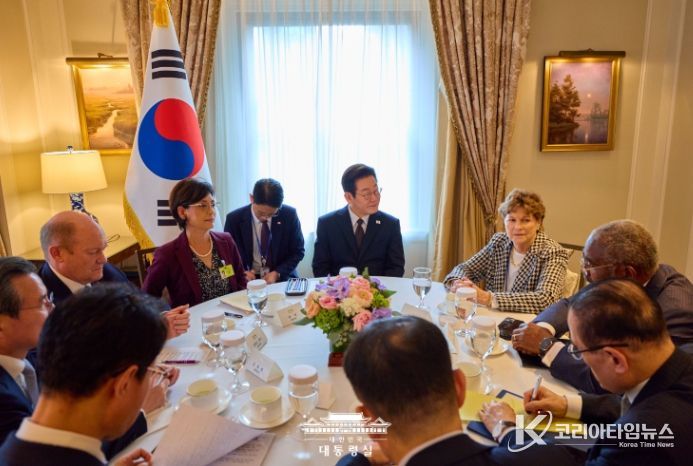 코리아타임뉴스 이아름 기자 | 유엔총회 참석 차 미국을 방문한 이재명 대통령이 22일(현지시간) 오후 뉴욕에서 미 상원 외교위 및 하원 외무위 소속 의원 4명을 접견하고, 한미동맹 강화, 한미 경제협력 확대 및 한반도 문제 등에 대해 의견을 교환했다.