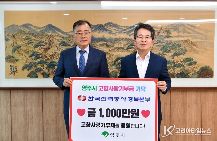 코리아타임뉴스 윤경수 기자 | 영주시는 지난 23일 한국전력공사 경북본부가 시청을 방문해 고향사랑기부금 1,000만 원을 전달했다고 밝혔다.