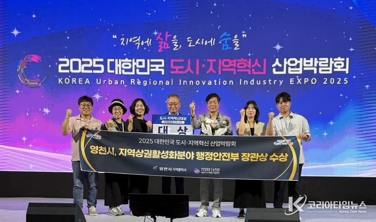 코리아타임뉴스 윤경수 기자 | 영천시는 24일 강원도 삼척 정라지구 도시재생사업지에서 열린 2025 대한민국 도시·지역혁신 산업박람회 ‘도시·지역혁신대상 공공부문 지역상권 활성화’ 분야에서 행정안전부 장관상을 수상했다고 밝혔다.