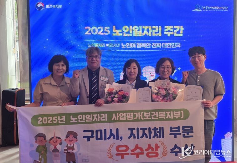 코리아타임뉴스 윤경수 기자 | 구미시는 지난 22일 웨스틴 조선호텔에서 열린 보건복지부 주최 노인일자리 주간 기념식에서 ‘2025년 노인일자리 및 사회활동 지원사업 종합평가’ 기초지자체 부문‘우수상’을 수상했다.