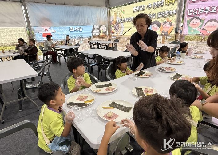남녀노소 누구나 참여할 수 있는 꼬투리김밥과 구슬떡고치 만들어 먹기 체험을 운영하고 있어 체험객들은 음식을 맛보며 가족·연인 단위 방문객들이 즐거운 시간을 보내고 있다.