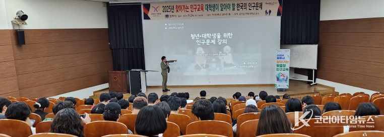 코리아타임뉴스 윤경수 기자 | 경주시는 지난 24일 위덕대학교 갈마관 대강당에서 재학생 100여 명을 대상으로 ‘찾아가는 맞춤형 인구교육’을 진행했다.