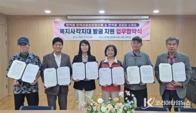 코리아타임뉴스 윤경수 기자 | 인천 동구 만석동 지역사회보장협의체(민간위원장 김은희)는 지난 23일 관내 경로당(만석동 제1경로당 등 6개소)과 복지사각지대 위기가구 발굴·지원 위한 업무협약을 체결했다고 밝혔다.