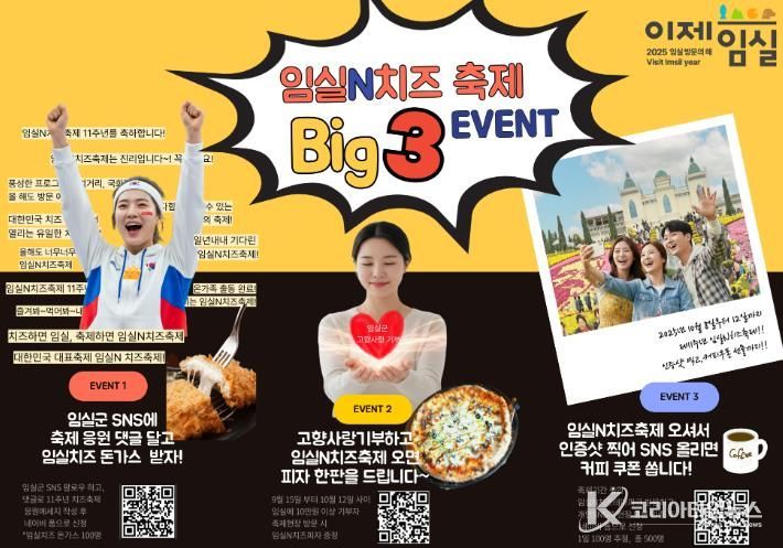 군은 2025 임실 방문의 해에 열리는 임실N치즈축제와 연계해 SNS 댓글 응원 이벤트, 고향사랑기부 이벤트 등 다양한 온․오프라인 이벤트를 이달 15일부터 10월 12일까지 3주간 진행하고 있다.