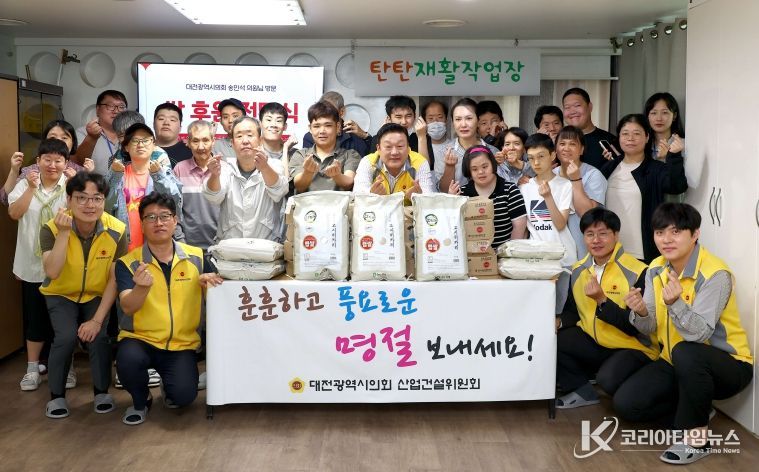 코리아타임뉴스 김택호 기자 | 대전시의회 송인석 산업건설위원장(국민의힘, 동구1)은 추석 명절을 앞둔 25일 동구 소재 장애인 재활시설 탄탄재활작업장(원장 이미정)을 방문해 위문품을 전달했다.