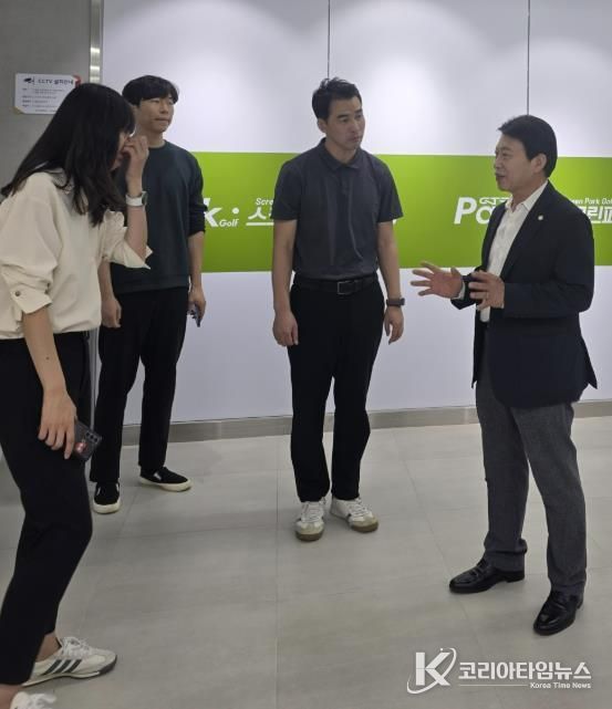 코리아타임뉴스 윤경수 기자 | 노윤상 강북구의회 국민의힘 대표 의원(삼양동·송천동·삼각산동)은 지난 22일, 강북종합체육센터(미아동 811-2)에 새롭게 조성된 실내 파크골프장의 시범 운영 첫날 현장을 찾아 어르신들과 직접 소통하며 운영 상황을 점검했다.