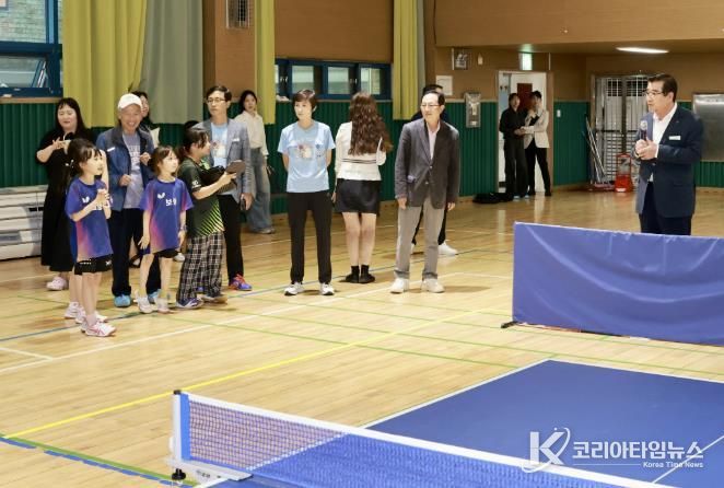 코리아타임뉴스 충남취재본부 | 보령시는 지난 29일 명천초등학교에서 한국마사회 탁구단 현정화 감독(前 국가대표 선수, 올림픽 금메달리스트)을 초청해 보령시 탁구 꿈나무들과 특별한 만남을 가졌다고 밝혔다.
