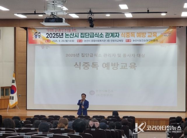 코리아타임뉴스 충남취재본부 | 논산시는 29일 종합사회복지관에서 학교·복지시설·산업체 등 집단급식소 관계자 200여 명을 대상으로 식중독 예방 교육을 실시했다.
