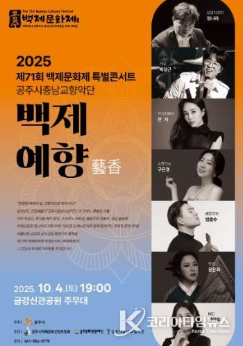코리아타임뉴스 충남취재본부 | 공주시충남교향악단은 제71회 백제문화제를 맞아 오는 10월 4일 저녁 7시, 공주 금강신관공원 주무대에서 특별콘서트 ‘백제 예향’을 개최한다고 밝혔다.