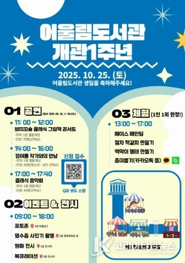 코리아타임뉴스 전북취재본부 | 남원어울림도서관 개관 1주년을 맞아 오는 10월 25일(토) 9시부터 도서관 내·외부에서 시민과 함께하는 행사를 개최한다.