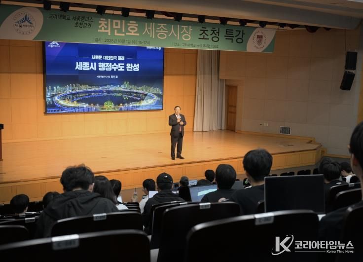 코리아타임뉴스 세종취재분부 | 최민호 세종특별자치시장이 1일 고려대학교 세종캠퍼스에서 대학생들과 저출생·지역소멸 등 국가적 문제 해결을 위한 행정수도 세종의 비전을 공유했다.