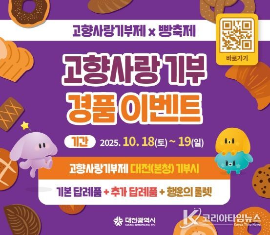 코리아타임뉴스 윤광희 기자 | 대전시는 오는 10월 18일부터 19일까지 소제동 카페거리와 대동천 일원에서 열리는 ‘2025 대전 빵축제’ 현장에 대전고향사랑기부제 홍보관을 운영한다고 6일 밝혔다.