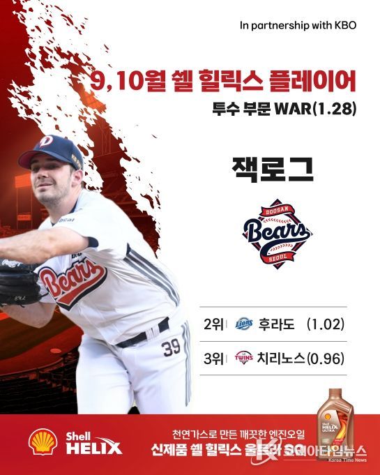 코리아타임뉴스 스포츠팀 | KBO와 한국쉘석유주식회사(이하 ‘한국쉘’)가 함께 시상하는 ‘쉘힐릭스플레이어’의 2025 신한 SOL뱅크 KBO 리그 9-10월 수상자로 두산 잭로그와 LG 오스틴이 선정되었다.