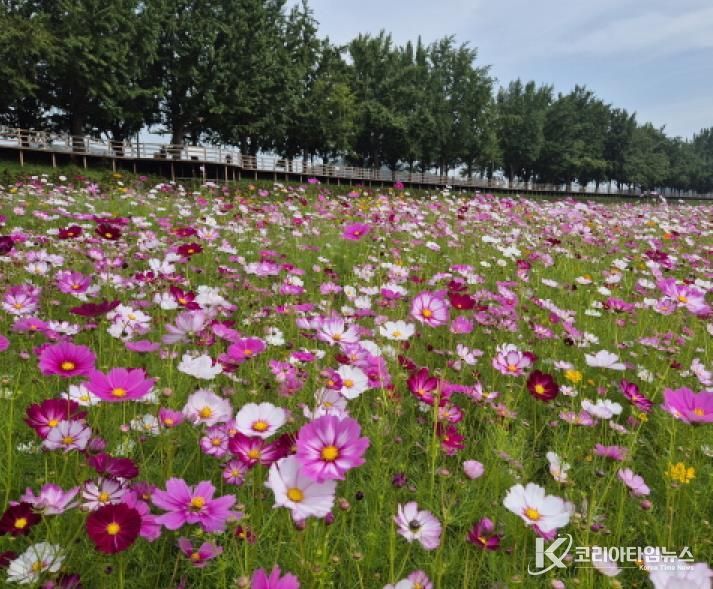 코리아타임뉴스 김택호 기자 | 아산시가 곡교천 방문객에게 휴식공간과 볼거리를 제공하기 위해 조성한 ‘곡교천 가을 초화원’이 가을꽃으로 아름답게 물들었다고 밝혔다.