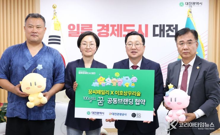 코리아타임뉴스 윤광희 기자 | 대전시는 10일 시청 응접실에서 대전관광공사, 우리술협동조합과 함께 공동브랜딩 업무협약을 맺고, 대전 대표 캐릭터 꿈돌이를 적용한 프리미엄 전통주 ‘100일의 꿈’을 출시한다고 밝혔다.