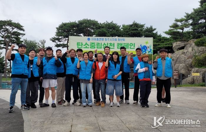 코리아타임뉴스 충북취재본부 | 한국자유총연맹 청주시지회는 12일 오전 흥덕구 문암생태공원에서 시민들을 대상으로 탄소중립 실천 캠페인을 개최했다.