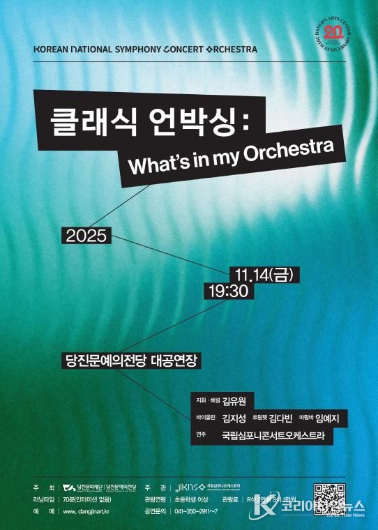 코리아타임뉴스 김택호 기자 | (재)당진문화재단·당진문예의전당은 오는 11월 14일 금요일 오후 7시 30분, 당진문예의전당 대공연장에서 국립심포니콘서트오케스트라 초청 공연‘클래식 언박싱 : What’s in my Orchestra’를 선보인다.