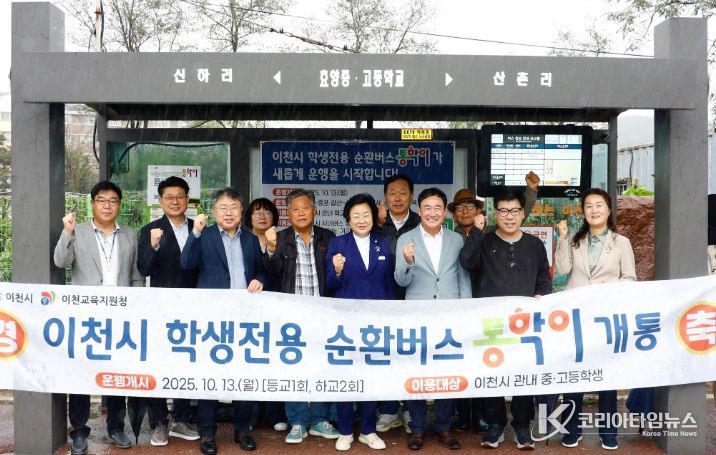 코리아타임뉴스 사회팀 | 경기도이천교육지원청은 10월 13일, 이천시와 함께 이천 관내 중·고등학생들의 안전한 통학을 지원하는 학생통학 순환버스 ‘통학이’ 개통식을 열고 시범운행을 시작했다.