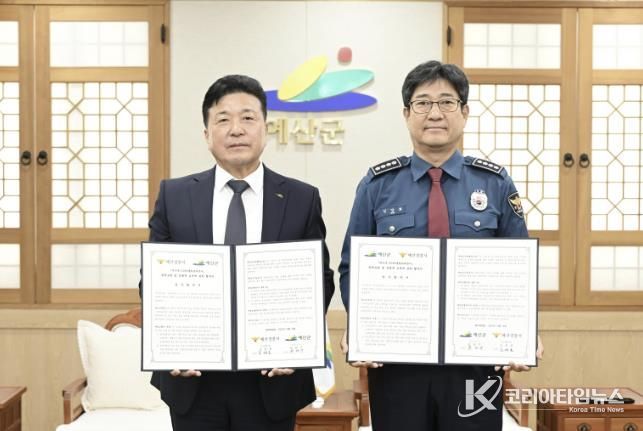 코리아타임뉴스 김택호 기자 | 예산군과 예산경찰서는 14일 군청 상황실에서 상호 전문교육을 통한 치안 강화 업무협약을 체결했다.