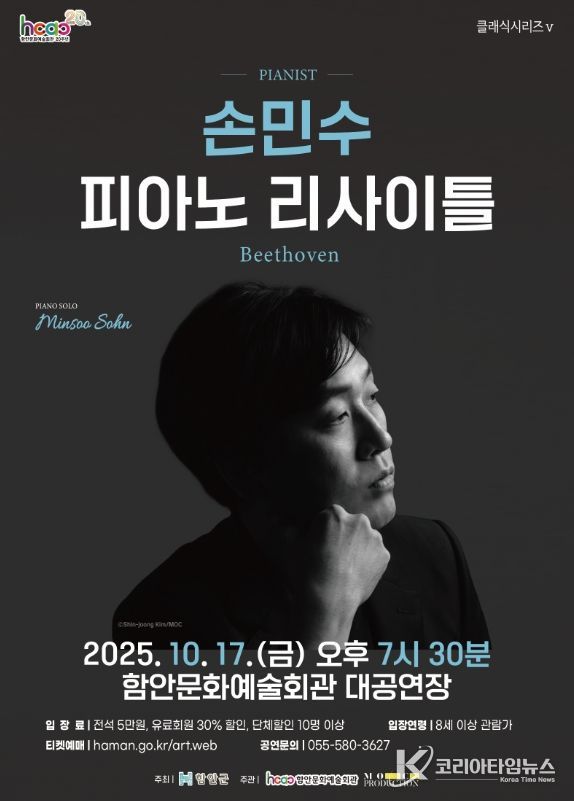 코리아타임뉴스 경남취재본부 | 함안군은 깊은 음악성을 지닌 피아니스트 손민수가 오는 10월 17일 함안문화예술회관 대공연장에서 열린다고 밝혔다.
