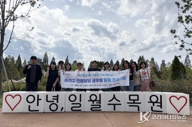 코리아타임뉴스 사회팀 | 수원시 권선구는 지난 14일부터 16일까지, 3일간 일월수목원에서 민원 담당 공무원을 위한 '권선구 민원담당 힐링프로그램'을 운영했다.