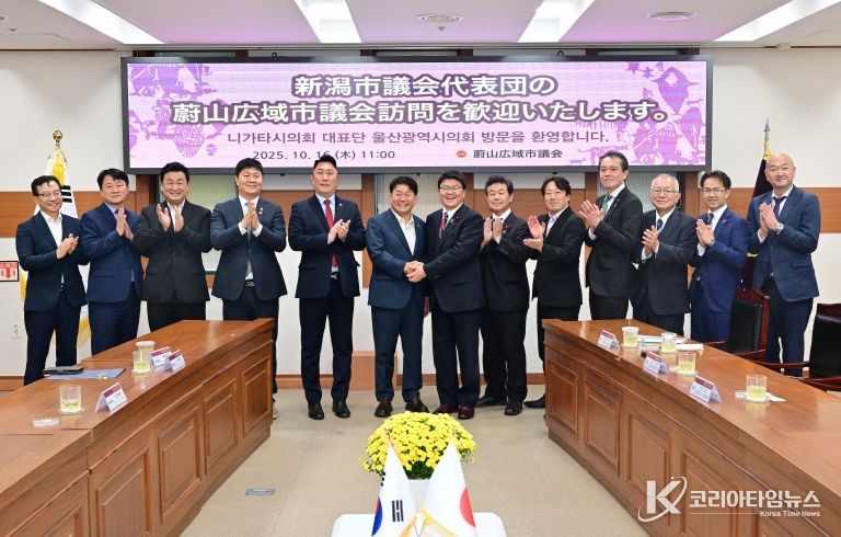 코리아타임뉴스 김태훈 기자 | 울산시의회는 16일 오전, 일본 니가타시의회 대표단이 울산공업축제 초청으로 울산시를 방문해 산업시찰 후 울산시의회를 방문함에 따라 양 의회 간 환담과 우호 교류의 시간을 가져다고 밝혔다.