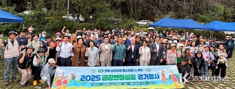 코리아타임뉴스 이아름 기자 | 전북특별자치도와 무주군이 공동 주최한 ‘2025 전북 삼천리길 페스티벌 in 무주 – 아름다운 금강변 마실길 걷기’ 행사가 16일 무주군 부남면 금강변 일원에서 200여 명이 참여한 가운데 성황리에 열렸다.