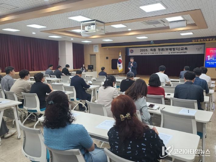 코리아타임뉴스 사회팀 | 대구동부교육지원청은 10월 16일 청사 대회의실에서 전 직원을 대상으로 ‘2025년 직원 청렴(부패방지) 교육’을 실시했다.