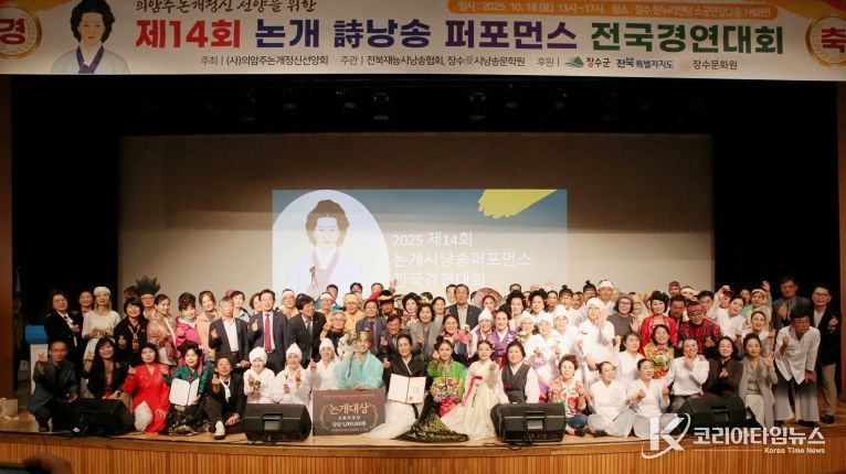 코리아타임뉴스 전북취재본부 | 장수군은 18일 장수한누리전당 소공연장에서 열린 ‘제14회 논개 시낭송 퍼포먼스 전국경연대회’가 전국 각지에서 모인 참가자들의 열띤 경연 속에 성황리에 마무리됐다고 밝혔다.