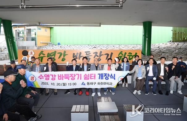 코리아타임뉴스 부산취재본부 | 부산 동래구는 지난 20일 수영강변 원동고가 하부에 ‘수영강 바둑장기 쉼터’를 개장했다고 밝혔다.