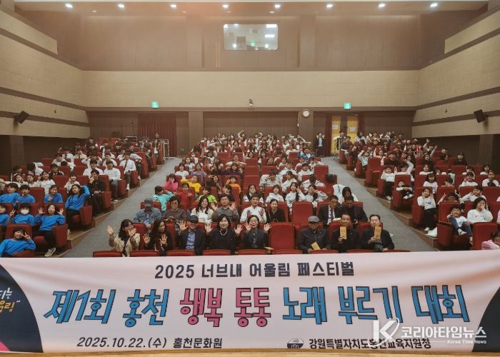 코리아타임뉴스 사회팀 | 홍천교육지원청은 10월 22일 홍천문화원 대강당에서 ‘제1회 2025 홍천 행복 통통 노래부르기 대회’를 개최했다.