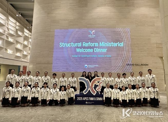 코리아타임뉴스 문화팀 | 인천 계양구립소년소녀합창단이 10월 22일 영종도 그랜드하얏트인천에서 열린 ‘APEC 구조개혁장관회의’ 환영 만찬 무대에 올라 아름다운 하모니를 선보였다.
