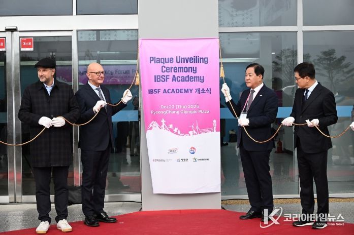 코리아타임뉴스 이아름 기자 | 2025 세계올림픽도시연맹 총회가 한창 진행 중인 평창올림픽플라자에서는 오늘(10월 23일) 오후, 이보 페리아니(Ivo Ferriani) IBSF(국제봅슬레이스켈레톤연맹) 회장과 전찬민 IBSF 부회장 겸 KBSF(대한봅슬레이스켈레톤연맹) 회장, 최성희 문체부 체육협력관, 심재국 평창군수 그리고 원윤종 등 국내외 썰매 종목 관계자와 선수들이 참석한 가운데 'IBSF 아카데미 평창사무소 개소식'이 열렸다.