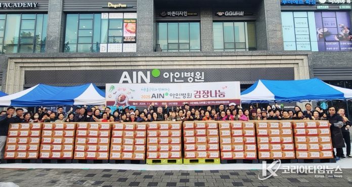 코리아타임뉴스 이아름 기자 | 인천 미추홀구는 6일 아인병원 앞 인도에서 아인의료재단(이사장 오익환)과 함께 동 지역사회보장협의체(연합회장 박창식) 주관으로 ‘김장 나눔 행사’를 진행했다.