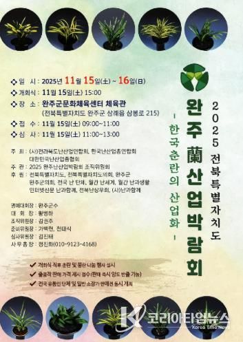 완주군은 오는 11월 15일부터 16일까지 이틀간 완주군 문화체육센터 체육관에서 ‘2025 전북특별자치도 난(蘭) 산업 박람회’를 개최한다고 밝혔다.
