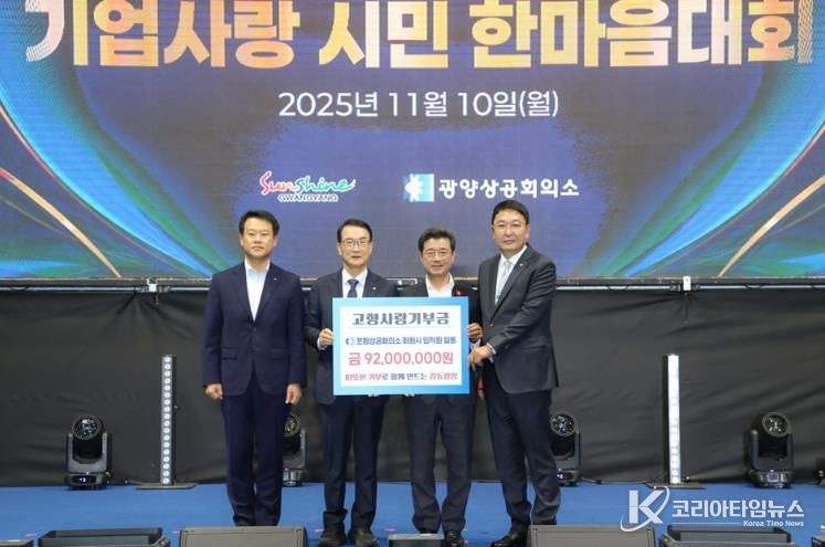 정인화 광양시장은 “기업인의 날 기념식이라는 뜻깊은 자리에서 두 상공회의소가 보여준 상호기부와 연대는 지역 간 교류와 우정의 상징이자, 고향사랑기부제의 모범 사례”라며 “이 같은 따뜻한 나눔이 지역사회의 희망이 되고, 지속 가능한 상생의 발판이 되고 있다”고 말했다.