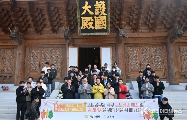 코리아타임뉴스 김태훈 기자 | 해남소방서가 11일부터 13일까지 해남 대흥사에서 직원의 마음건강 회복 및 재충전을 위한 특별프로그램을 운영한다고 밝혔다.