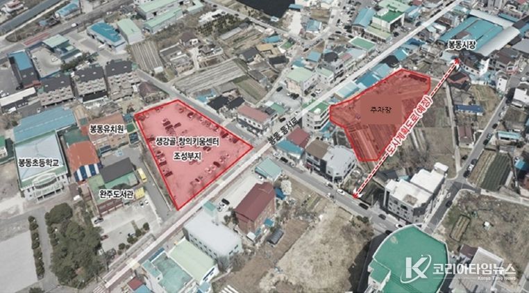 코리아타임뉴스 전북취재본부 | 완주군이 봉동시장과 맞닿은 장기리 일원에 85면 규모의 공영주차장을 조성하며 봉동읍 도심 상권의 숨통을 틔우고 있다.