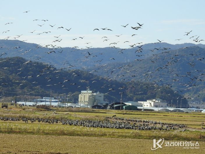 코리아타임뉴스 전남취재본부 | 순천시는 안풍들 일대 전봇대 제거로 흑두루미 서식지를 확대한 결과, 멸종위기Ⅰ급인 황새가 순천만에서 관찰됐다고 밝혔다.